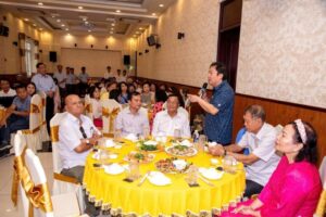 Ông Đinh Ngọc Ninh – Chủ tịch Tập đoàn Ngọc Việt phát biểu và kêu gọi toàn thể cán bộ – nhân viên cùng chung tay đóng góp hỗ trợ đồng bào miền Trung vượt qua thiên tai.
